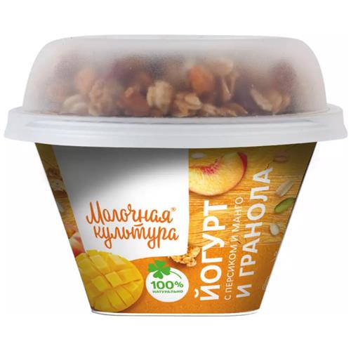 Йогурт Молочная Культура с персиком манго и гранолой с изюмом 2.7-3.5%, 190г в магазинах Перекресток