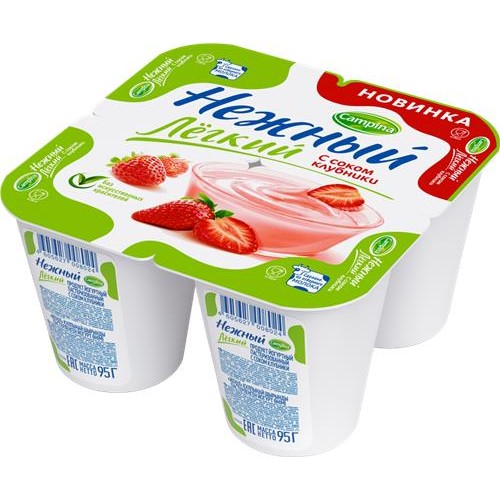 Йогурт НЕЖНЫЙ Легкий с соком клубники 0,1%, без змж, 95г в магазинах Лента