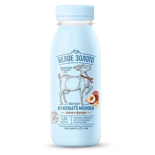 Йогурт питьевой Белое Золото из козьего молока злаки и фундук 3,2% БЗМЖ, 300 мл (kastd) в магазинах Ашан