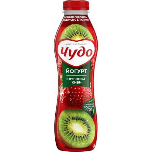 Йогурт питьевой ЧУДО Клубника, киви 1,9%, без змж, 680г в магазинах Лента