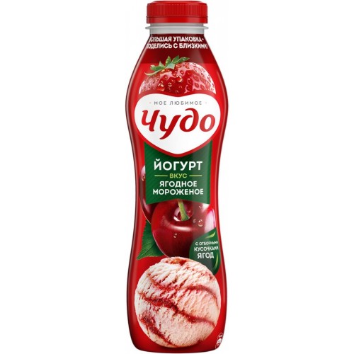 Йогурт питьевой ЧУДО Ягоды, мороженое 1,9%, без змж, 680г в магазинах Лента