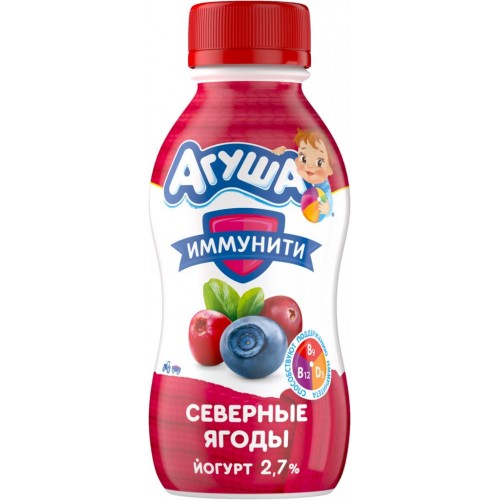Йогурт питьевой детский АГУША фруктовый Северные ягоды 2,7%, с 8 месяцев, без змж, 180г в магазинах Лента