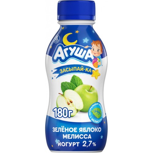 Йогурт питьевой детский АГУША Засыпай-ка Яблоко зеленое, мелисса 2,7%, с 8 месяцев, без змж, 180г в магазинах Лента