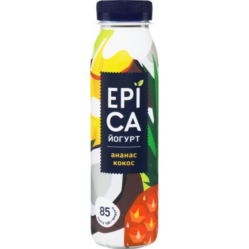 Йогурт питьевой EPICA с ананасом и кокосом 2,6%, без змж, 260г в магазинах Лента