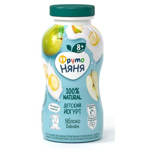 Йогурт питьевой ФрутоНяня банан яблоко с 8 месяцев 2.5%, 200 мл (kastd) в магазинах Ашан