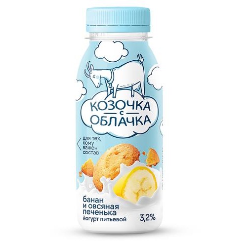 Йогурт питьевой Козочка с облачка из козьего молока банан-овсяное печенье 3,2% БЗМЖ, 200 мл (kastd) в магазинах Ашан
