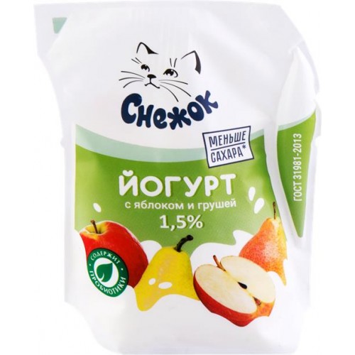Йогурт питьевой СНЕЖОК с яблоком и грушей 1,5%, без змж, 200г в магазинах Лента