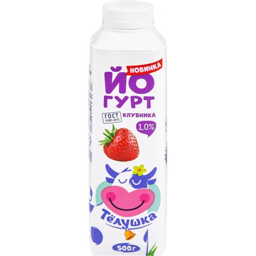Йогурт питьевой ТЕЛУШКА Клубника 1%, без змж, 500г в магазинах Лента