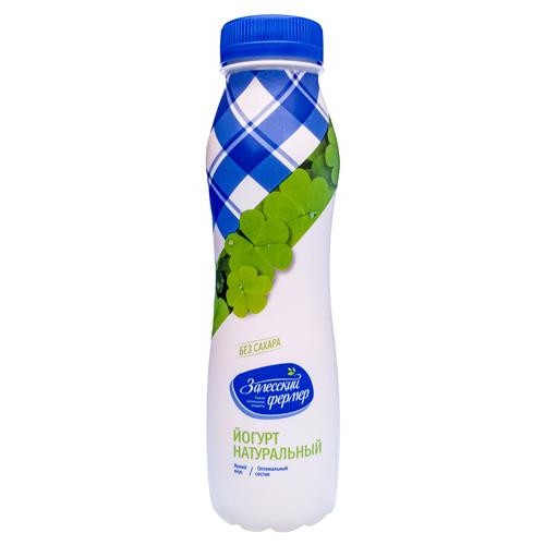 Йогурт питьевой Залесский Фермер натуральный из цельного молока 2,8%, 268 мл (kastd) в магазинах Ашан