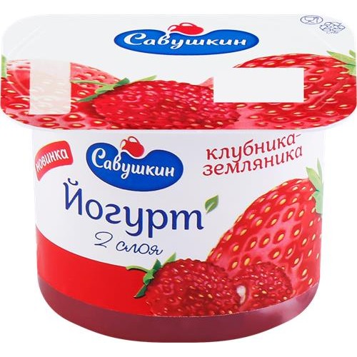 Йогурт САВУШКИН Клубника, земляника двухслойный 2%, без змж, 120г в магазинах Лента