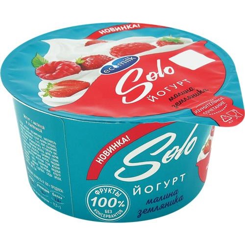 Йогурт SOLO Малина и земляника 4,2%, без змж, 130г в магазинах Лента