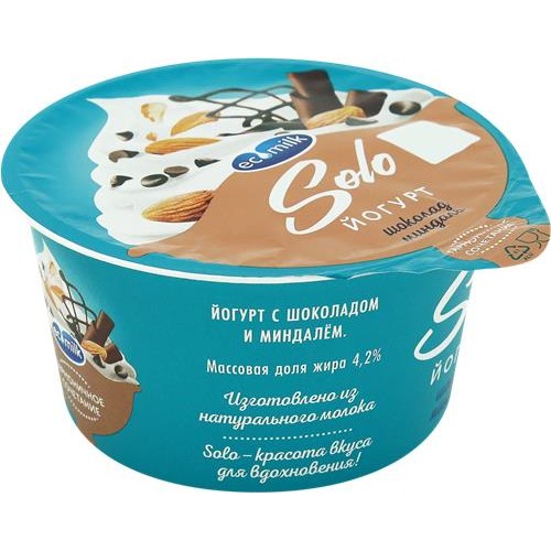 Йогурт SOLO Шоколад и миндаль 4,2%, без змж, 130г в магазинах Лента