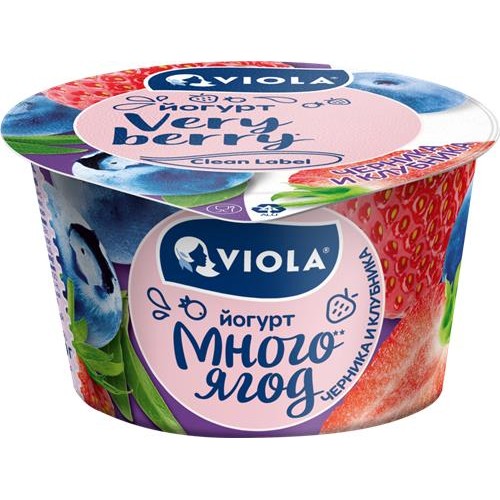 Йогурт VIOLA Very Berry с черникой и клубникой 2,6%, без змж, 180г в магазинах Лента