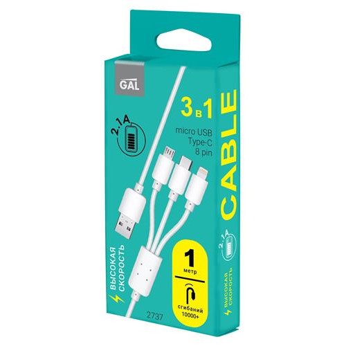 Кабель Gal 3 в 1, 1 м (kastd) в магазинах Ашан