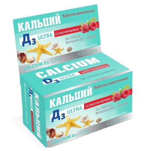 Кальций Д3 Ultra жевательные таблеки со вкусом малины 500 мг, 100 шт (kastd) в магазинах Ашан