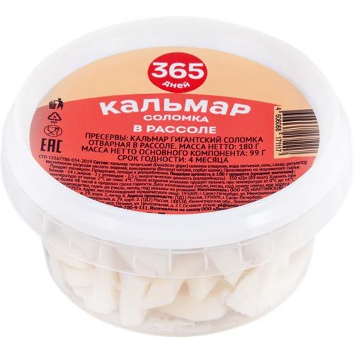 Кальмар 365 ДНЕЙ в рассоле соломка, 180г в магазинах Лента