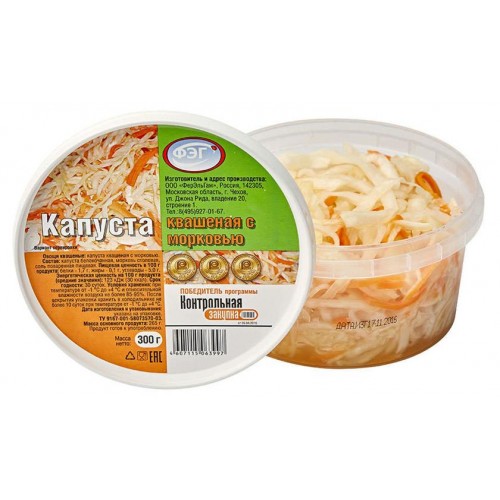 Капуста квашеная ФЭГ с морковью, 300 г (kastd) в магазинах Ашан
