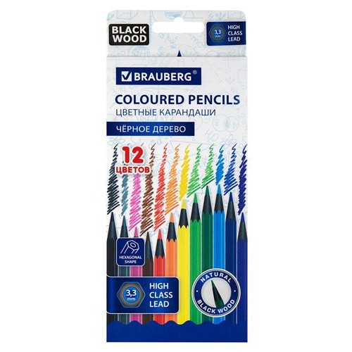 Карандаши цветные BRAUBERG, 12 цветов (kastd) в магазинах Ашан