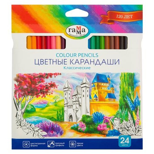 Карандаши цветные Гамма Классические, 24 цветов (kastd) в магазинах Ашан