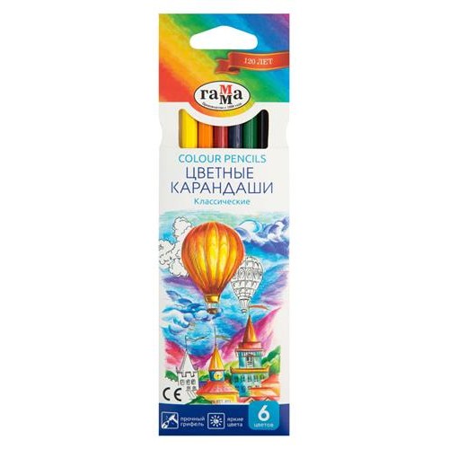 Карандаши цветные Гамма Классические, 6 цветов (kastd) в магазинах Ашан