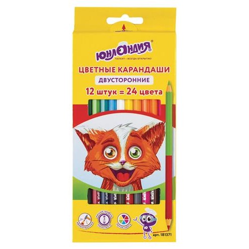 Карандаши цветные ЮНЛАНДИЯ Гляделки Двухсторонние, 12 цветов в магазинах Ашан