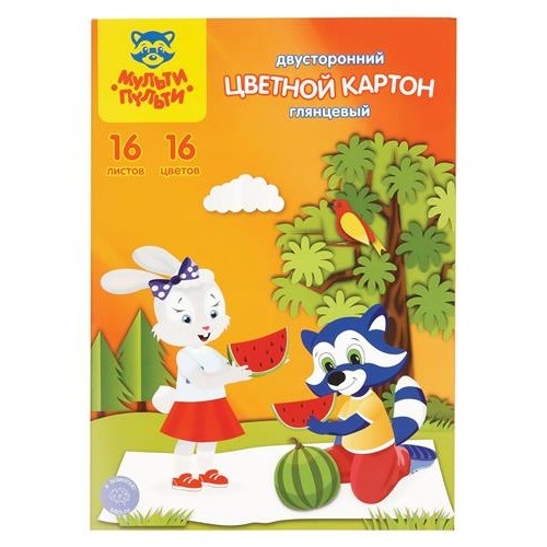 Картон цветной Мульти-пульти Приключения Енота двусторонний А4 16 цветов, 16 листов (kastd) в магазинах Ашан