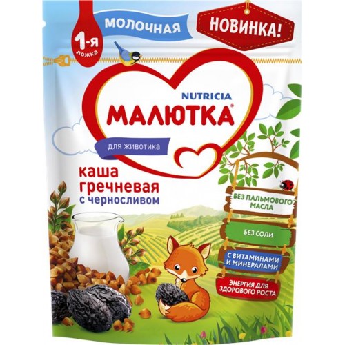 Каша гречневая МАЛЮТКА молочная с черносливом, с 4 месяцев, 220г в магазинах Лента