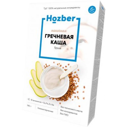 Каша Hozber молочная гречневая груша с 6 месяцев 180г в магазинах Магнит