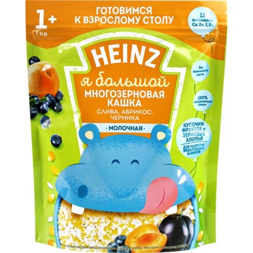 Каша многозерновая HEINZ Любопышки, молочная со сливой, абрикосом и черникой, с 12 месяцев, 200г в магазинах Лента