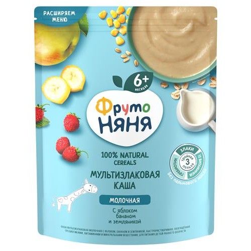 Каша молочная ФрутоНяня мультизлаковая яблоко, банан, земляника с 6 мес., 200 г (kastd) в магазинах Ашан