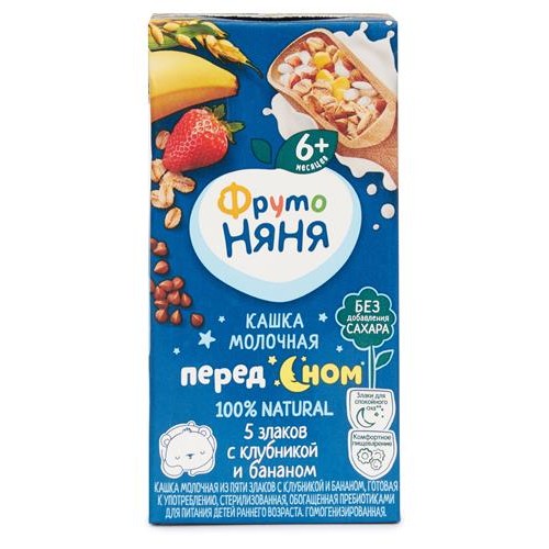 Каша молочная ФрутоНяня Перед сном 5 злаков с клубникой и бананом с 6 мес., 200 мл (kastd) в магазинах Ашан