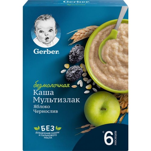Безмолочная мультизлаковая каша GERBER с яблоком и черносливом – это здоровый и питательный завтрак для вашего малыша! В составе каши нет сахара, красителей, ГМО и консервантов, а чистая рецептура обогащена витаминами, аминокислотами и клетчаткой.