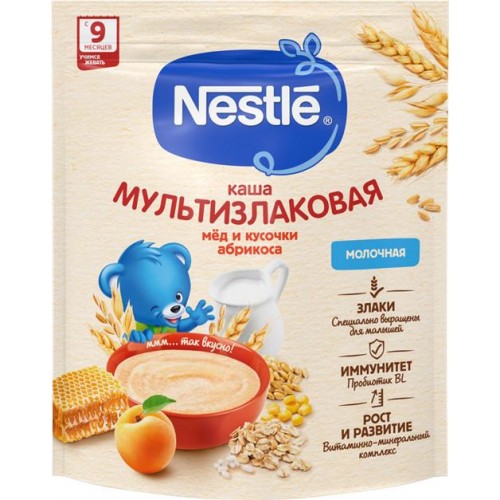 Каша мультизлаковая NESTLE молочная, с медом и абрикосом, с 9 месяцев, 200г в магазинах Лента