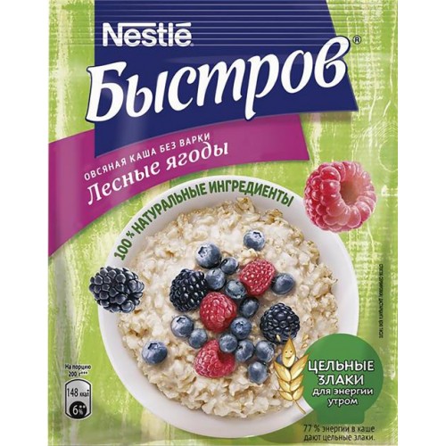 Каша овсяная БЫСТРОВ Лесные ягоды, не требующая варки, 40г в магазинах Лента