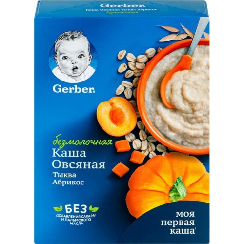 Каша овсяная GERBER безмолочная, с тыквой и абрикосом, с 5 месяцев, 180г в магазинах Лента