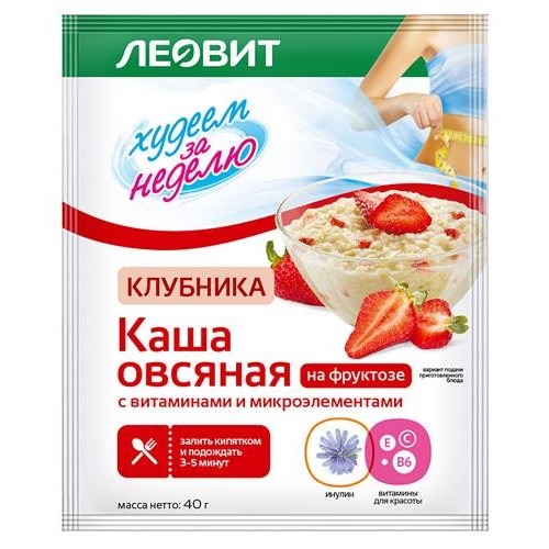 Каша овсяная ЛЕОВИТ Худеем за неделю клубника витамины и микроэлементы, 40 г (kastd) в магазинах Ашан