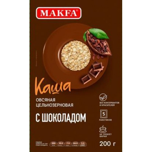 Каша овсяная Makfa цельнозерновая с шоколадом 200г в магазинах Магнит