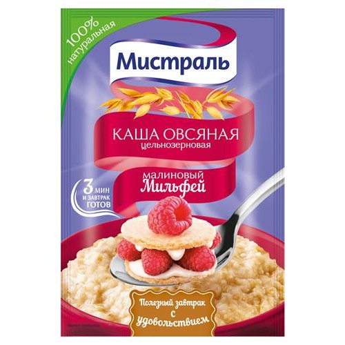 Каша овсяная Мистраль малиновый мильфей, 40 г (kastd) в магазинах Ашан
