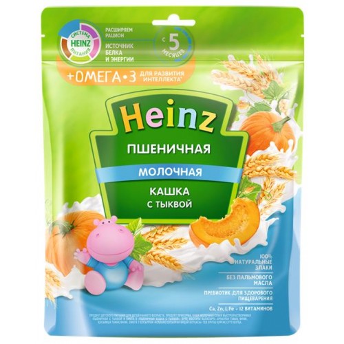 Каша пшеничная HEINZ молочная с тыквой и Омега-3, с 5 месяцев, 200г в магазинах Лента