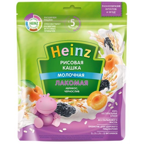Каша рисовая HEINZ Лакомая, молочная с абрикосом и черносливом, с 5 месяцев, 170г в магазинах Лента