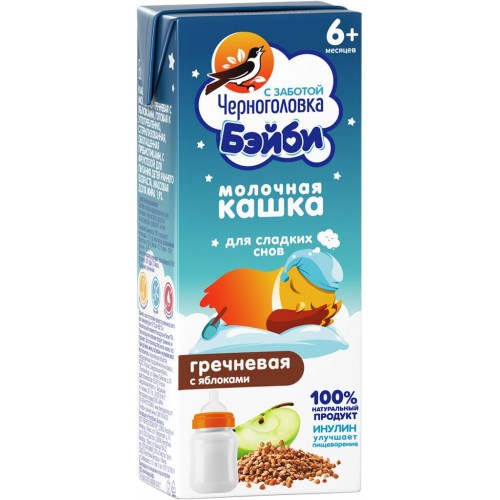 Кашка гречневая ЧЕРНОГОЛОВКА БЭЙБИ Для сладких снов, молочная с яблоком, с 6 месяцев, 200мл в магазинах Лента