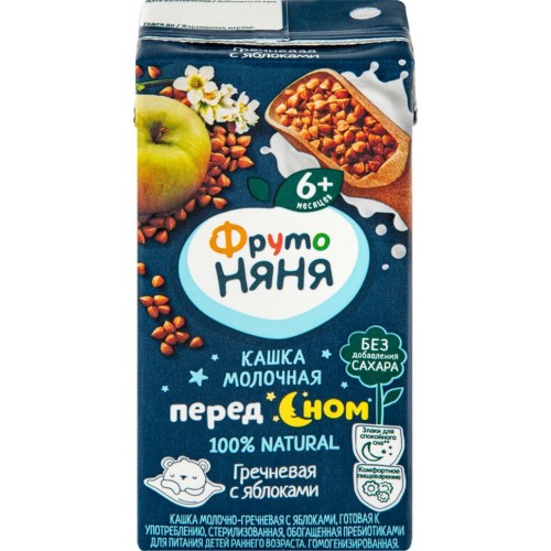 Кашка гречневая ФРУТОНЯНЯ молочная, с яблоком и пребиотиками, с 6 месяцев, 200мл в магазинах Лента