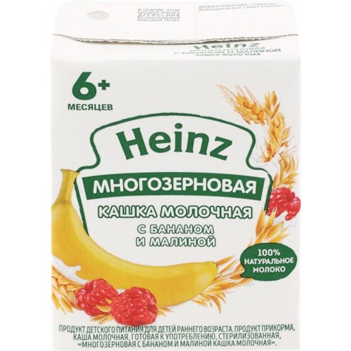 Кашка многозерновая HEINZ молочная, с бананом и малиной, с 6 месяцев, 200мл в магазинах Лента