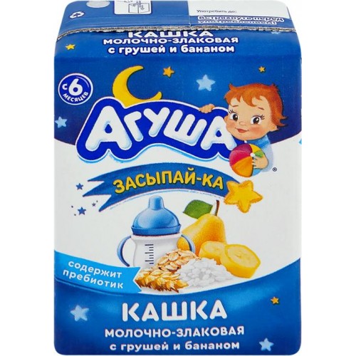 Кашка злаковая АГУША Засыпай-ка молочная 2,7%, с грушей и бананом, с 6 месяцев, 200мл в магазинах Лента