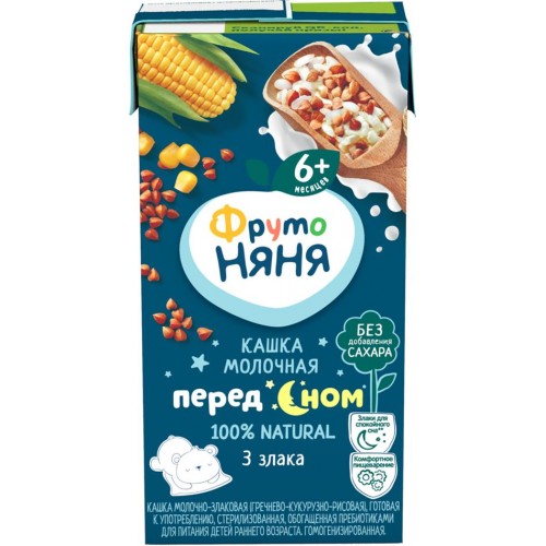 Кашка злаковая ФРУТОНЯНЯ молочная, гречка, кукуруза и рис с пребиотиками, с 6 месяцев, 200мл в магазинах Лента