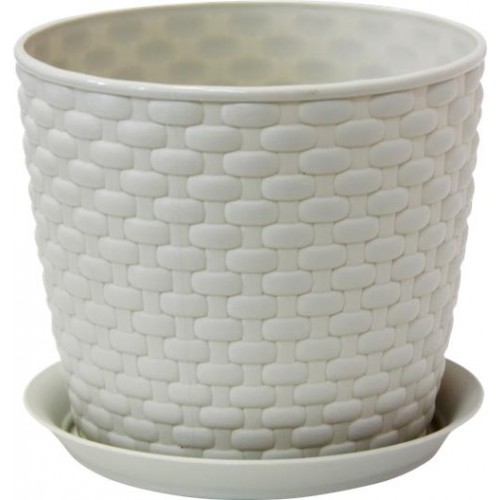 Кашпо с поддоном IDEA Ротанг, d=155мм 2л, белый, Арт. М3081 в магазинах Лента