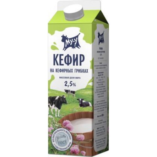 Кефир Му-у 2.5% 900 г – это высококачественный кисломолочный продукт, изготовленный из коровьего молока с использованием живых кефирных культур. Он обладает жирностью 2,5% и массой 900 грамм.