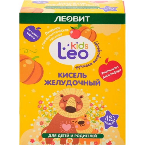 Кисель ЛЕОВИТ Leo Kids, Желудочный, с 1 года, 5х12г в магазинах Лента