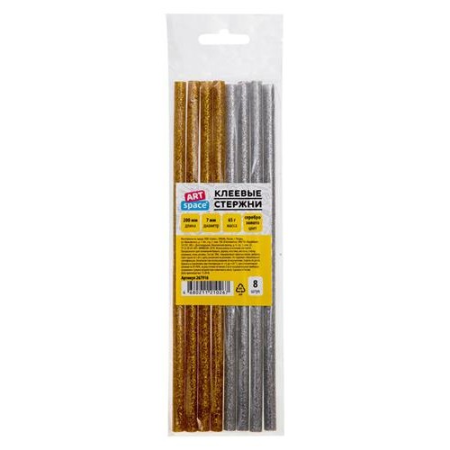 Клеевые стержни ArtSpace диаметр 7мм длина 200мм золото серебро, 8 шт (kastd) в магазинах Ашан