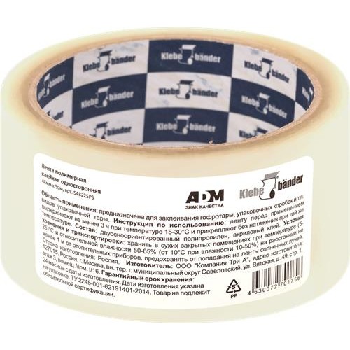 Клейкая лента KLEBEBANDER 40мкм, прозрачная, 4,8см Арт. S48225PS, 50м в магазинах Лента
